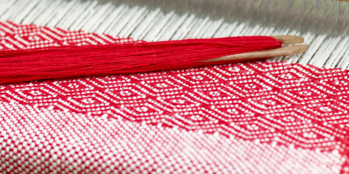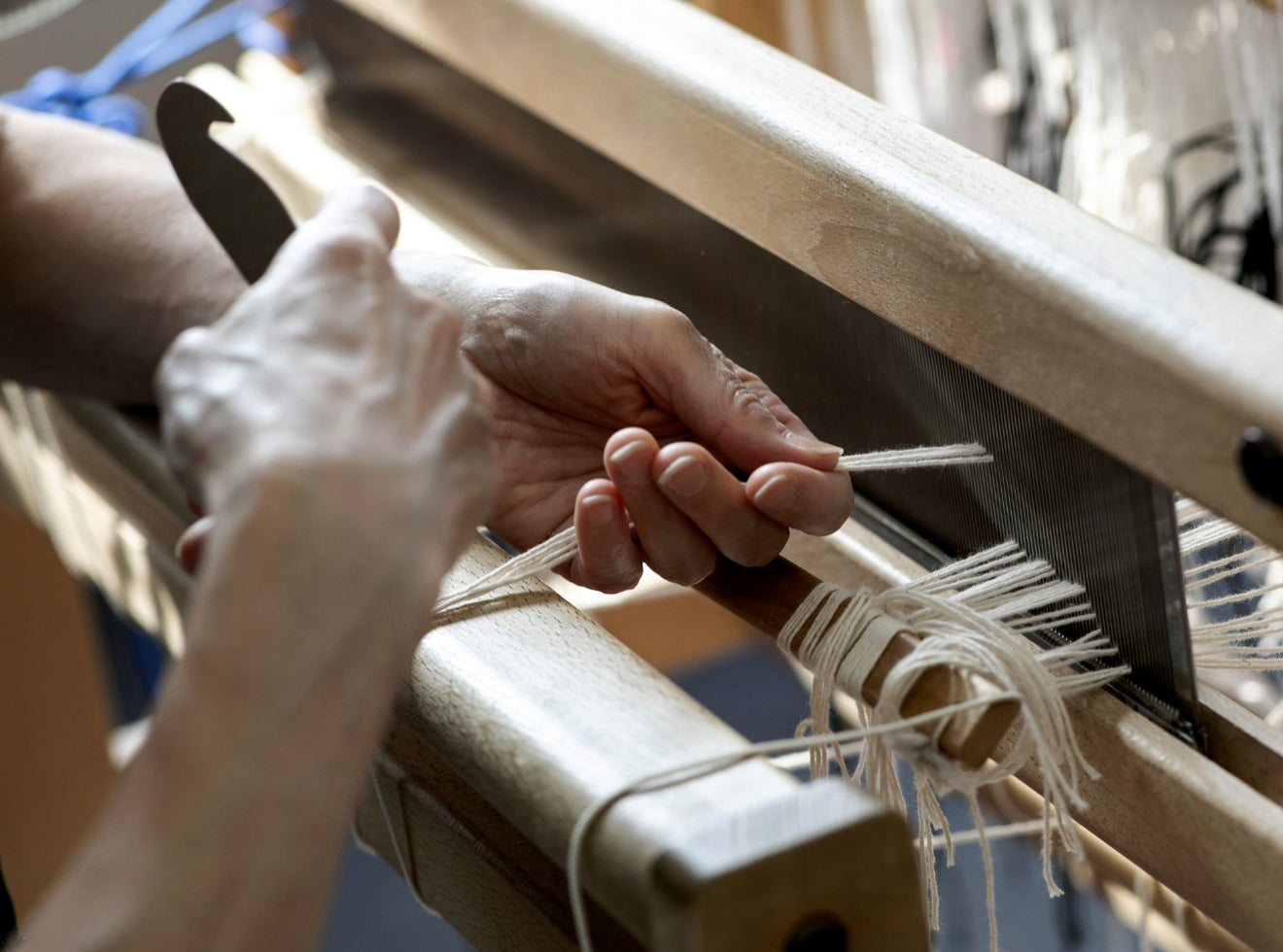 ぬくもりあふれる北欧テイストの手織り。織り機で一つひとつ手間をかけて丁寧に織り上げています。